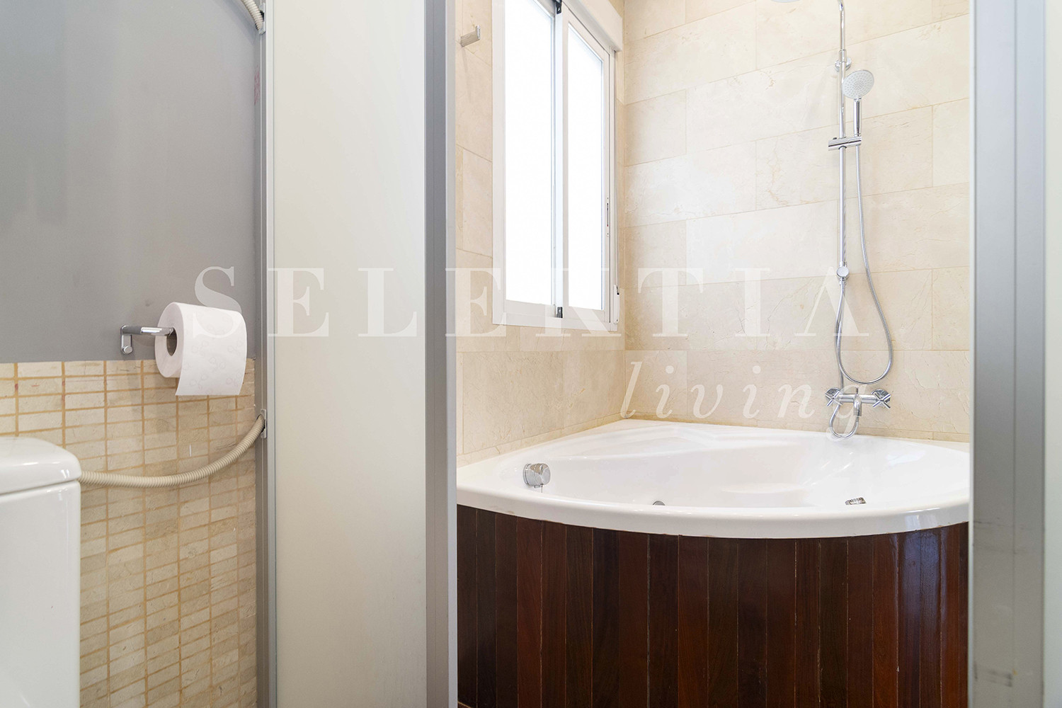 Consta de una sala de estar muy luminosa con grandes ventanales, un cómodo sofá cama para dos personas acompañado de dos sillones, un televisor inteligente de pantalla plana de 40 "con conexión a internet, una cocina totalmente equipada con refrigerador, congelador, vitrocerámica, lavadora / secadora Máquina, microondas, cafetera Nespresso, tostadora, licuadora, utensilios y vajilla completa, un comedor con mesa para 4 personas, un dormitorio con una cama doble de 160x200 cm y un amplio baño con plato de ducha grande y artículos de tocador. Los armarios en la sala de estar y el dormitorio, y el piso de todo el apartamento está cubierto por una cómoda plataforma de madera de la más alta calidad, el apartamento cuenta con aire acondicionado y calefacción central, y conexión Wi-Fi privada y gratuita con conexión de fibra óptica.